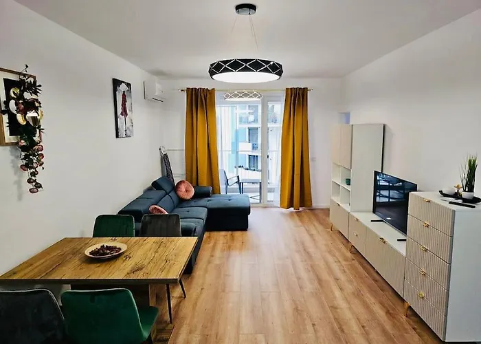 Apartmán City Center And Modern Flat - City Of Mara Cm12, umístěný 15 minut chůze od centra města Temešvár, nabízí parkování na soukromém parkovišti zdarma na místě. Areál má terasu i pokoje s balkónem, pracovním stolem, přístrojem na přípravu kávy a čaje.